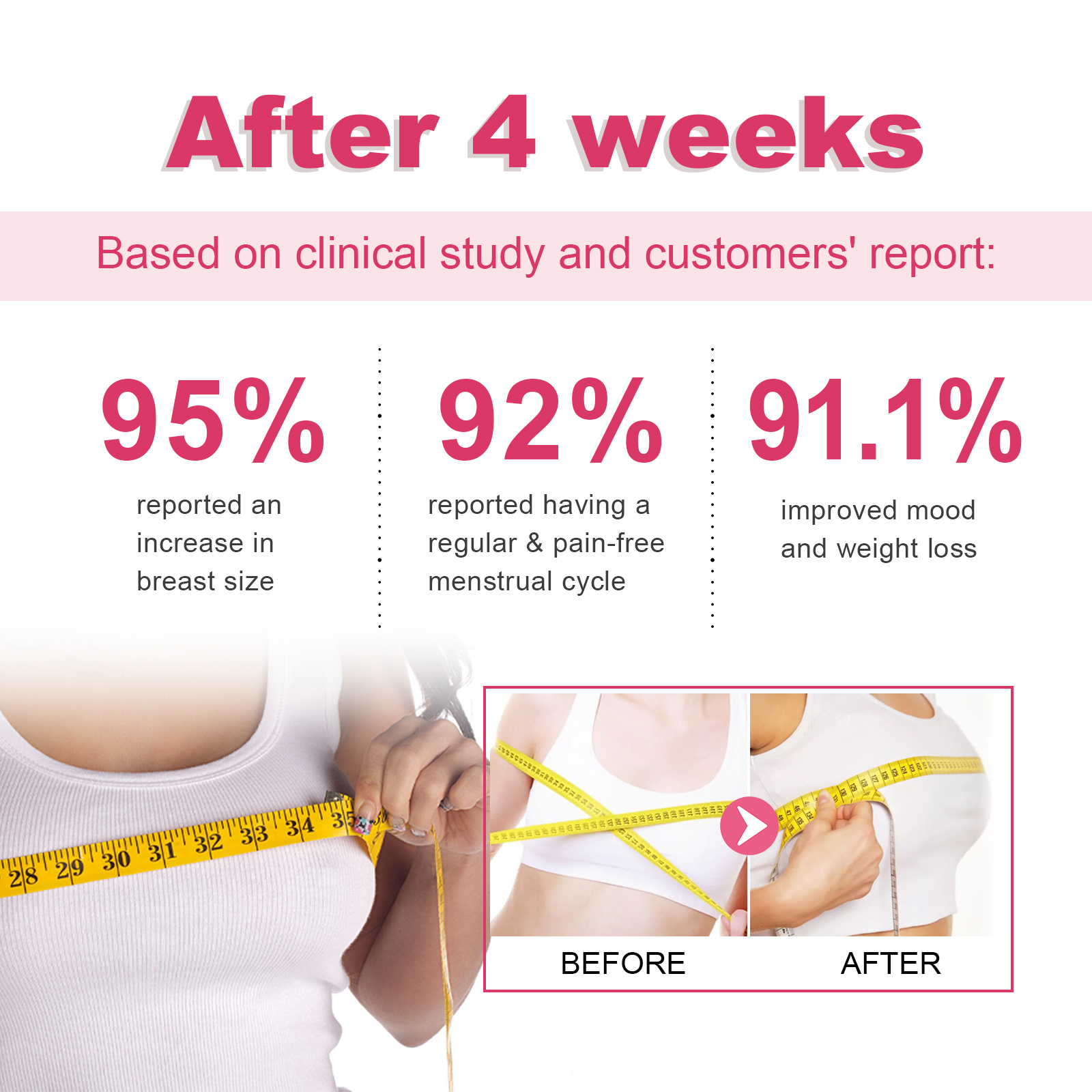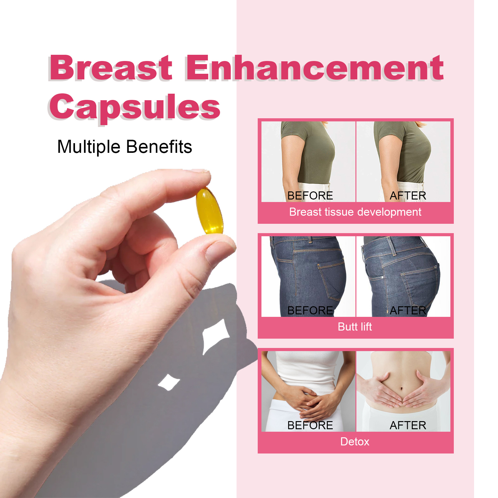 Our Breast Enhancement Capsules contain tocopherol (vitamin e), trehalose, and glycerin. It can improve the shape of the body by increasing the production of female hormones, and also help regulate the menstrual cycle. The way to use it is very simple: keep it moist after cleaning the private area, when lying or sitting, place the capsule 6-7 cm deep in the vagina and wait for the capsule to be naturally absorbed by the body (use two hours before going to bed). Gently moisturize the chest skin, making the chest more full and firm.