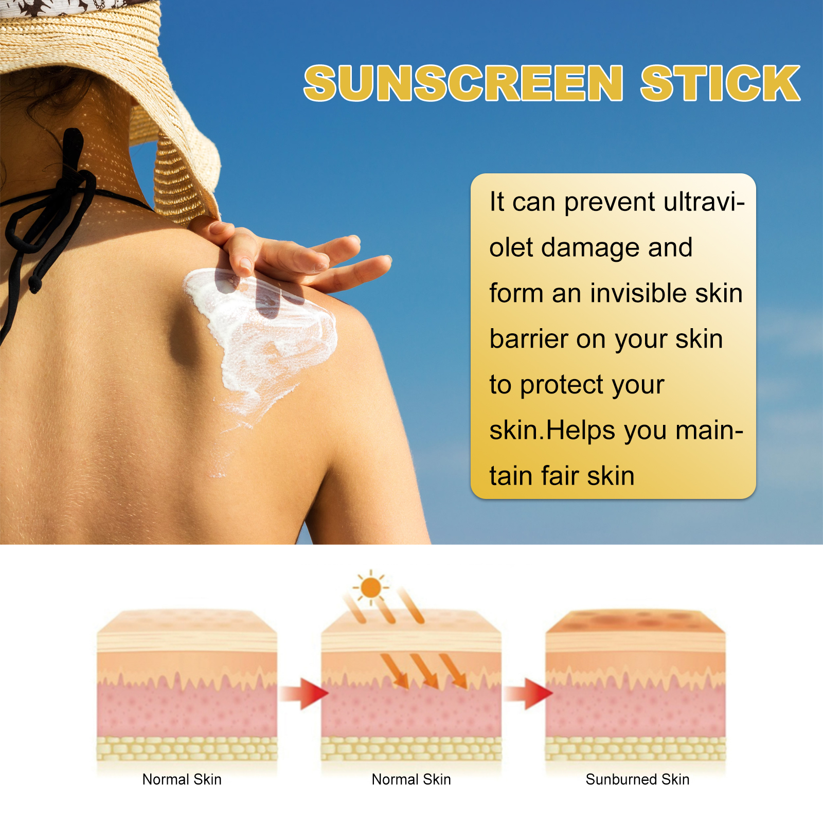 Our Sunscreen Stick contains Rosa Damascena Flower Extract, Glycerin, Titaniuma Dioxide. It prevents UV damage to the skin and forms an invisible skin barrier on the skin to help keep it pale and protect your skin. Its application is simple: clean and dry the skin, and apply the product evenly to the desired area. Can reflect ultraviolet light, absorb and filter ultraviolet light, full-wavelength protection, multi-directional protection of ultraviolet radiation.