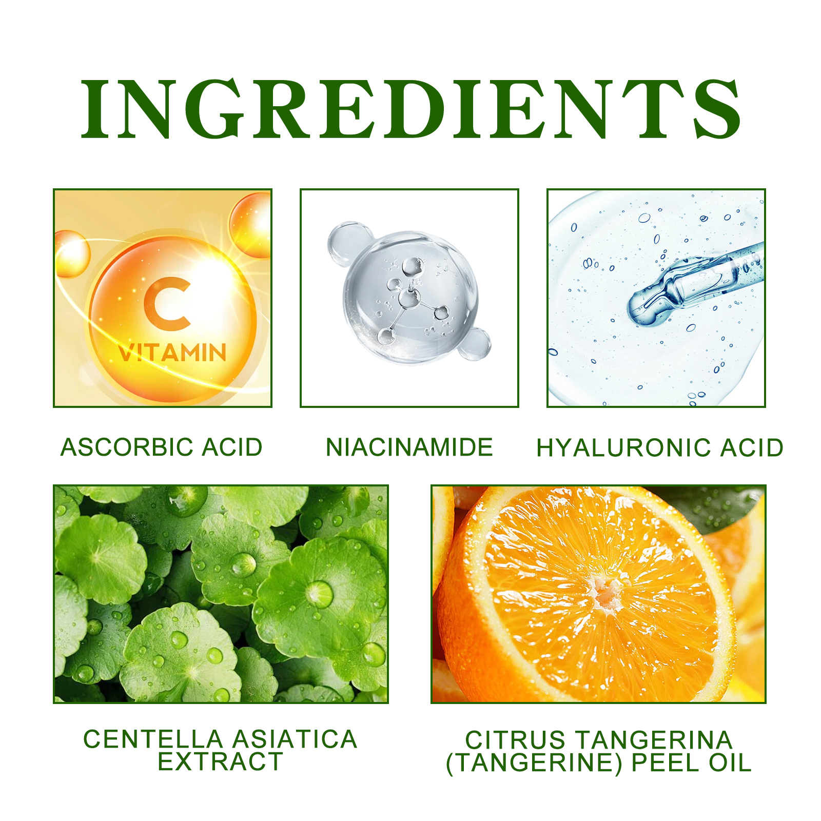 Our Vitamin C Dark Spot Serum contains ascorbic acid, niacinamide, hyaluronic acid. It can help you improve pigmentation after dark spots and acne, and effectively soothes your skin. Effective antioxidants to tone skin tone. Promotes collagen production. Its application method is very simple: After cleaning the face, apply an appropriate amount of this product on the face, and gently massage the essence until the skin is completely absorbed. Can help lighten the complexion and make your skin more radiant.