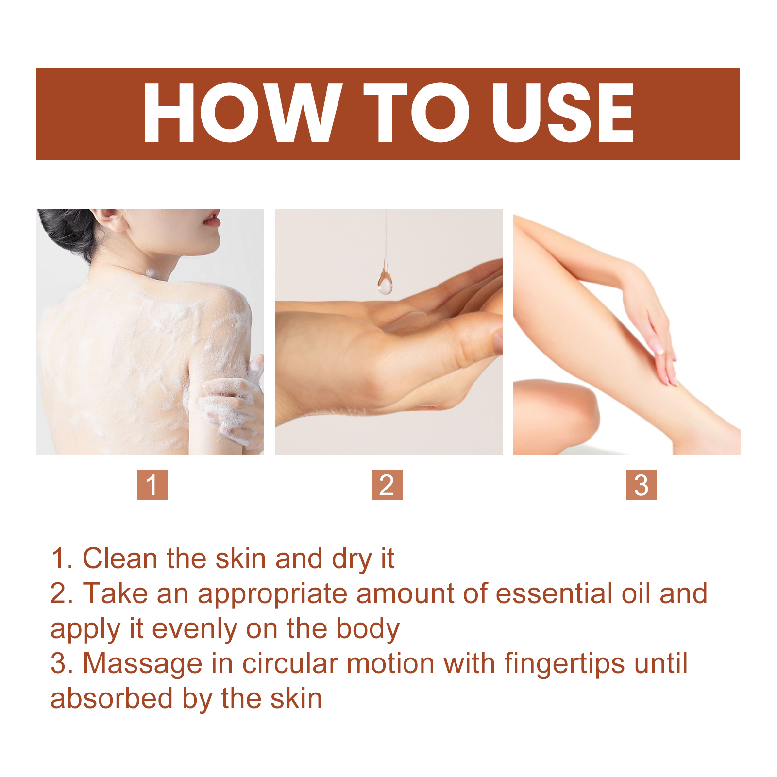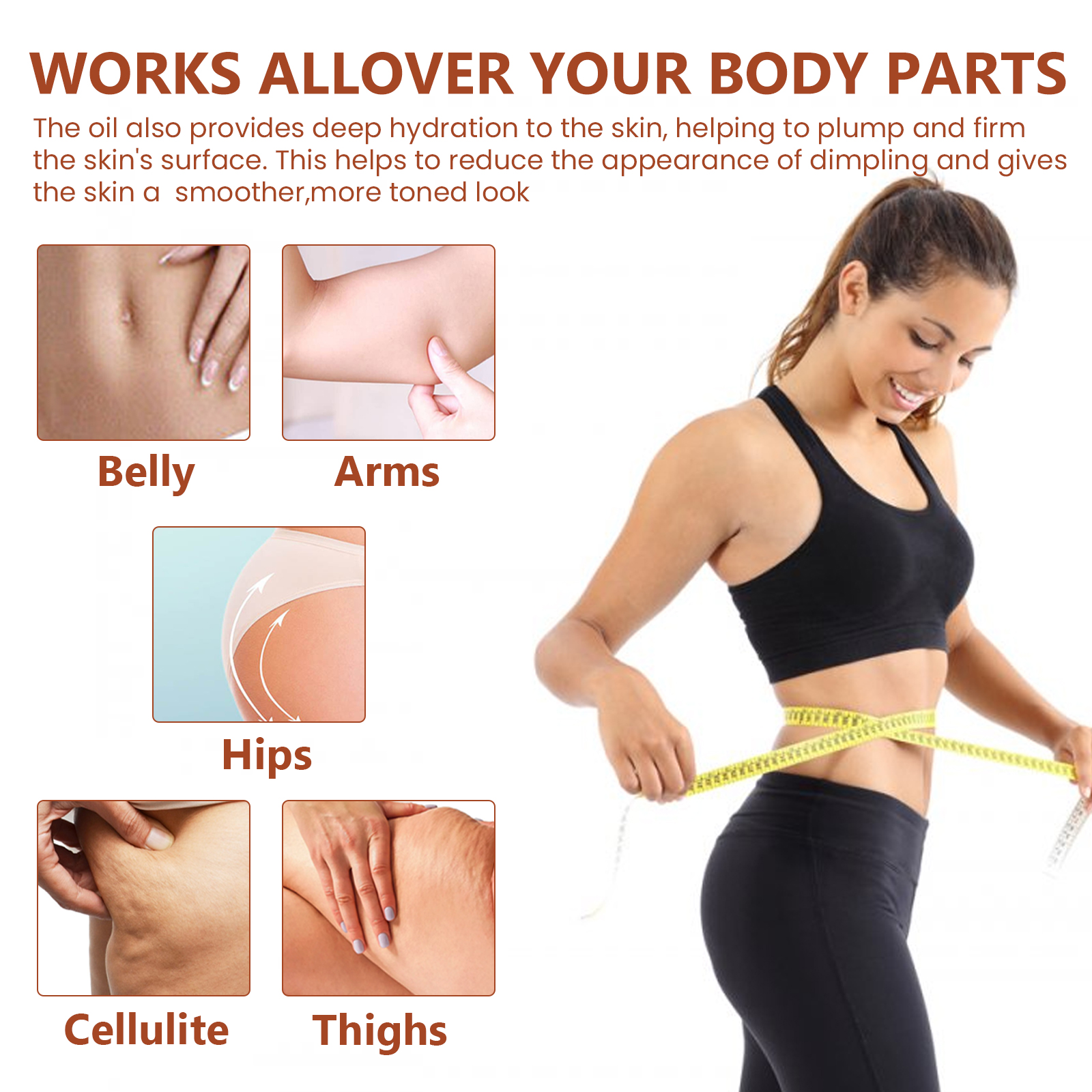 Our anti-aging serum contains grapefruit peel oil, lemon extract and coconut oil. It can improve skin texture, promote blood circulation, enhance skin moisture and elasticity, and tighten thigh skin. Reduce the appearance of cellulite and make thighs smoother. Its use method is very simple: first clean and dry the skin, and then evenly apply the appropriate amount of essential oil on the body, massage with the fingertips in a circular motion until it is absorbed by the skin. After use, it helps to promote smooth skin, reduce brown fat tissue, promote the metabolism of the skin, achieve slimming effect, and make the body slimmer and more beautiful.