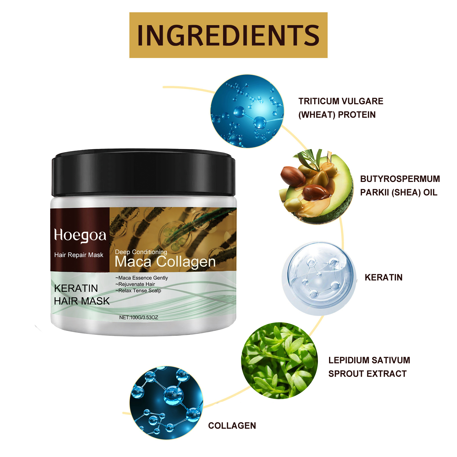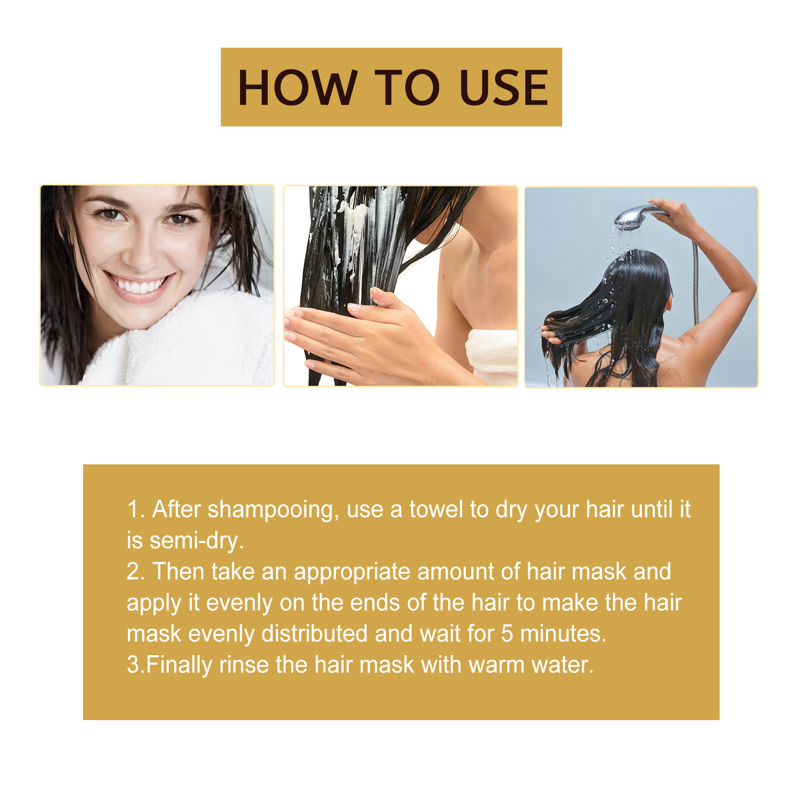 Our hair repair mask contains clove oil, peppermint oil and camphor oil. It can provide hair with essential moisture and nutrients to rejuvenate it, provide care for dry and damaged hair, enhance shine and make hair smoother, harness the power of collagen and herbal extract formula to inject nutrients into every hair. Its use method is very simple: after shampooing, towel dry hair is half dry, take the appropriate amount of hair film evenly applied to the hair, so that the hair film evenly distributed, wait for 5 minutes, and finally rinse the hair film with warm water. And it moisturizes your hair.