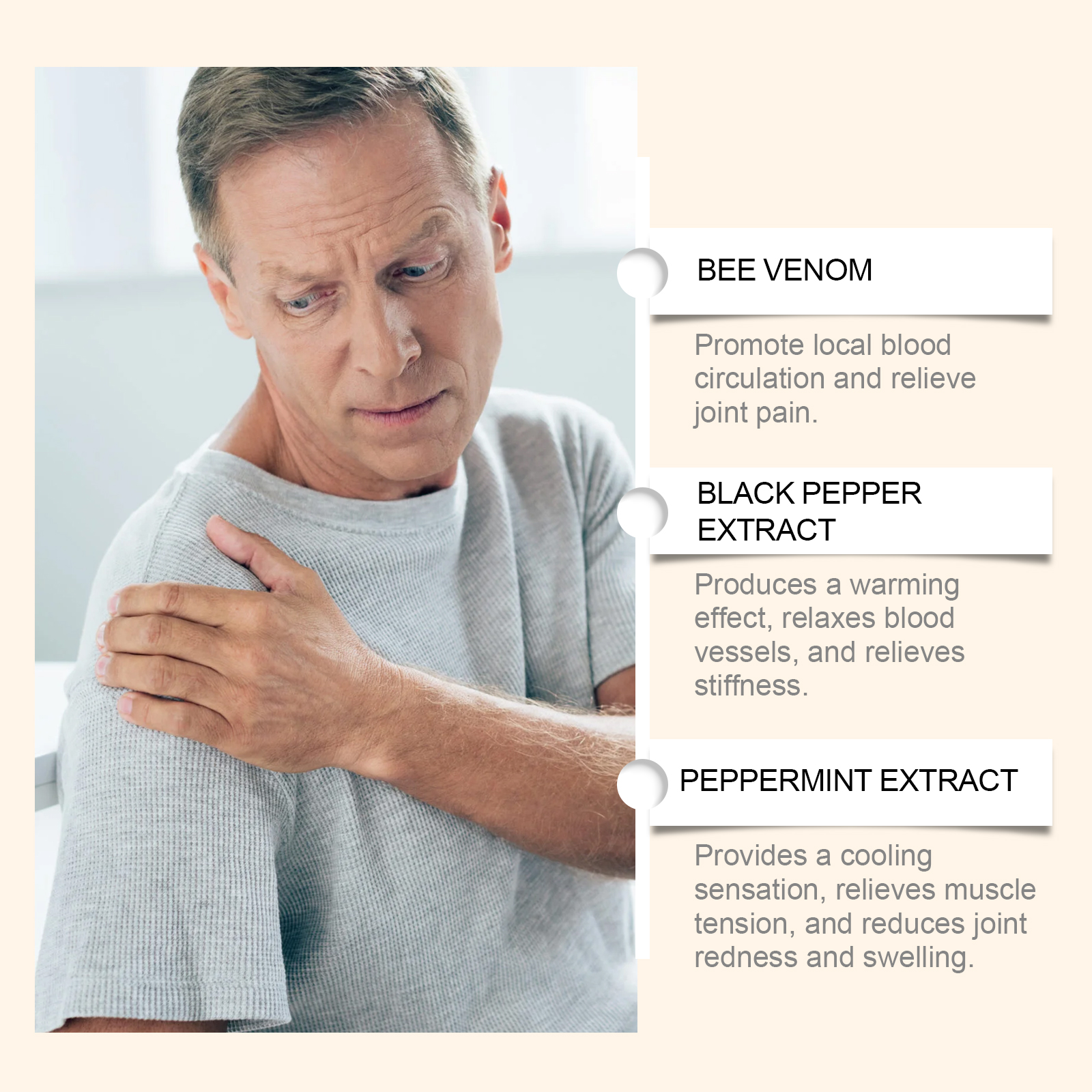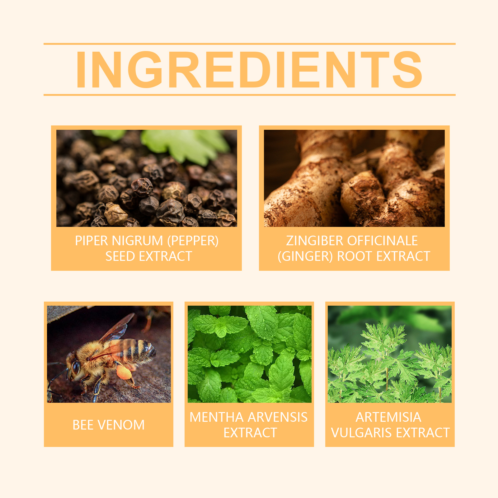 Our bee Venom Joint relief patch contains mugwort extract and ginger root extract. It can improve joint range of motion and quality of life. The way to use it is simple: clean dry body skin. Apply a patch to the skin of the joint, gently press the patch to ensure it is attached to the body, wait 3-4 hours and then remove the patch. And easy to use and care for at any time
