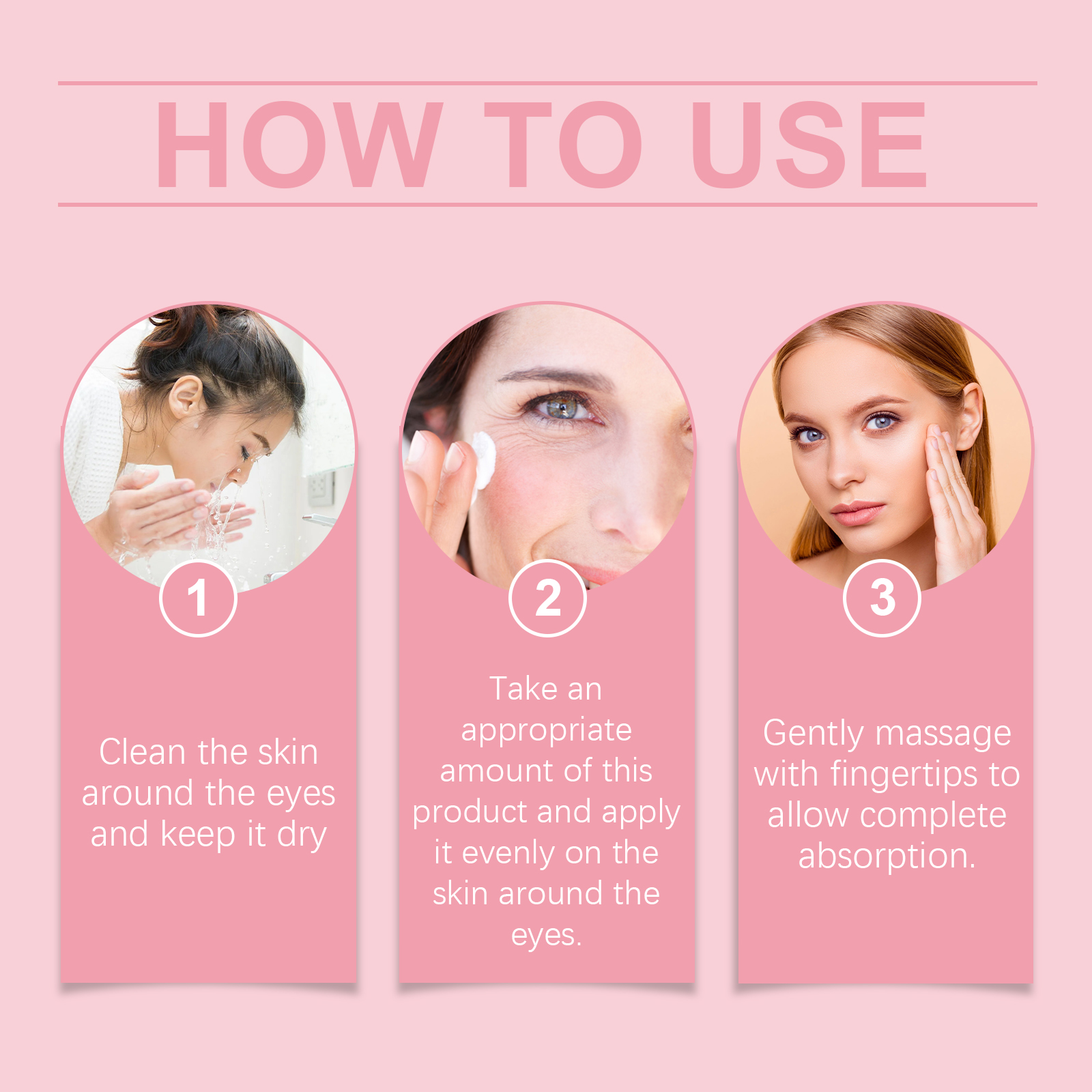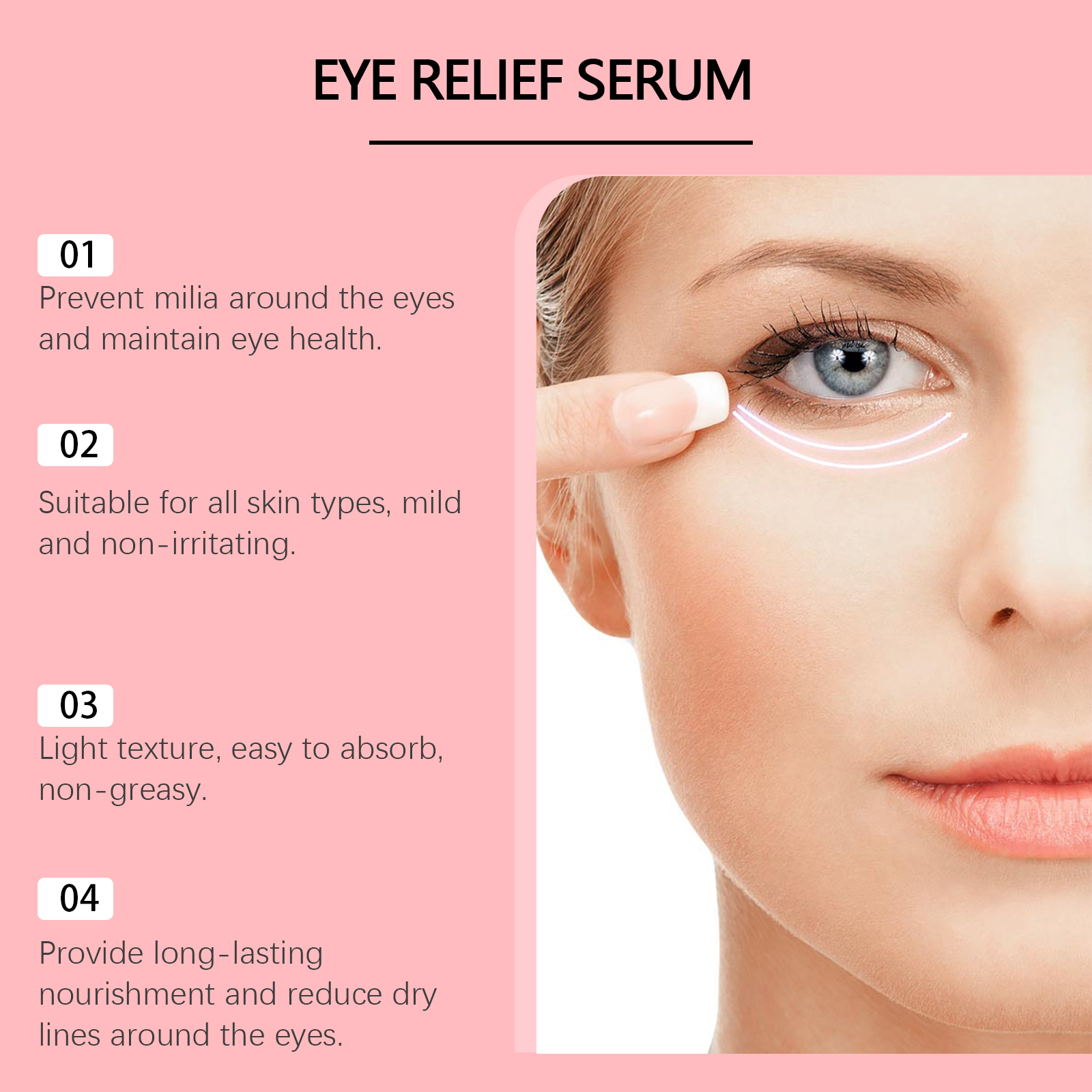 Our eye care serum contains chrysanthemum oil and glycerin. It keeps the skin hydrated and keeps the eyes supple. Its application method is very simple: clean the skin around the eyes to keep dry, apply an appropriate amount of this product evenly on the skin around the eyes, massage gently with your fingertips, and let the skin completely absorb. And it can make your eyes firmer and look younger. Helps relieve pimples and makes your eyes brighter.