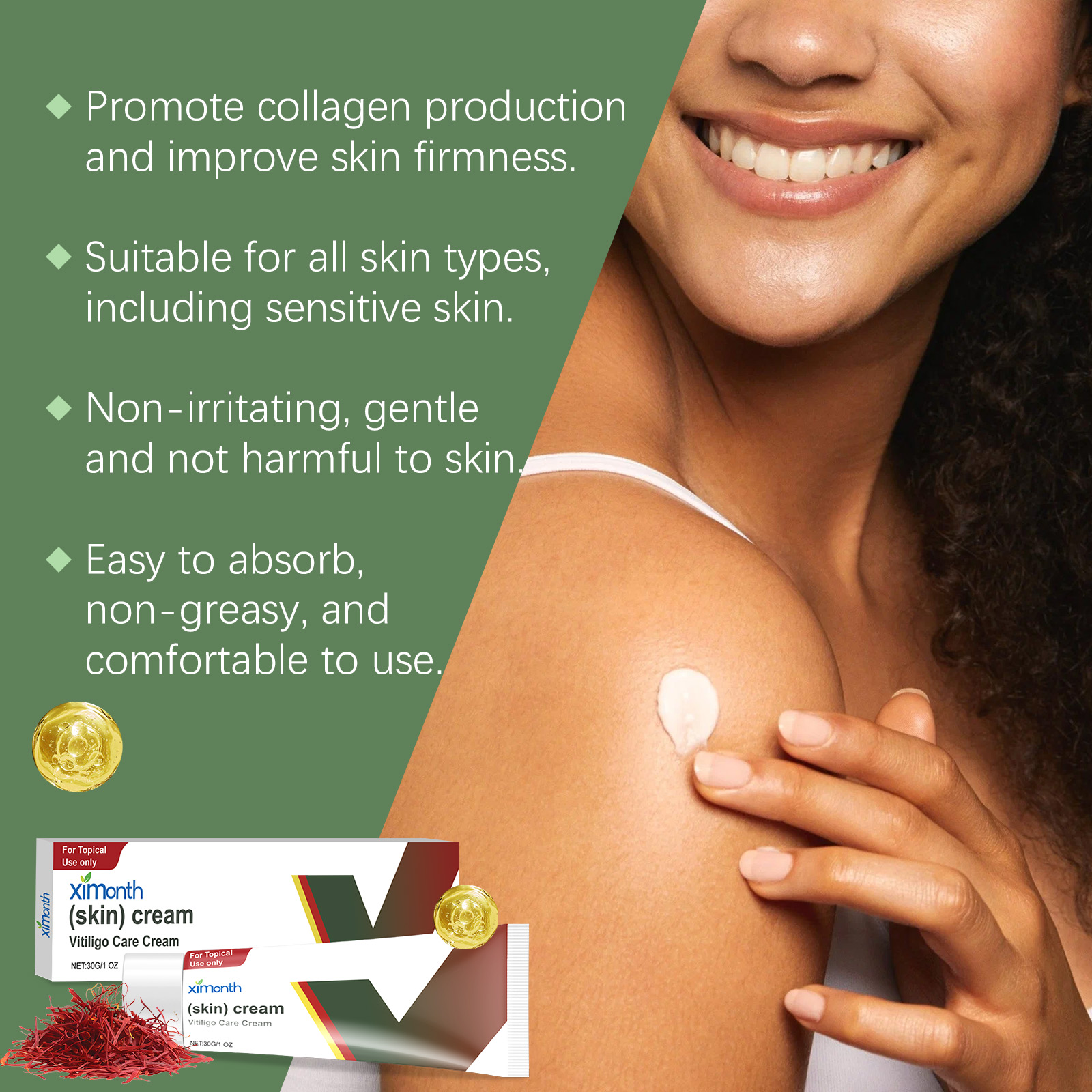 Our skin care cream contains glycerin, psoralea fruit extract, safflower extract. It can penetrate deep into the skin and moisturize the skin for a long time. It can effectively repair damaged skin and restore skin health. It can relieve skin discomfort and reduce white spots. Its use is simple: 1. Clean and dry the skin; 2. Apply appropriate amount of the product evenly to the affected area; 3. Gently massage until absorbed. Precise control of melanin, even skin tone. Rich in antioxidants, anti-free radicals, anti-aging.