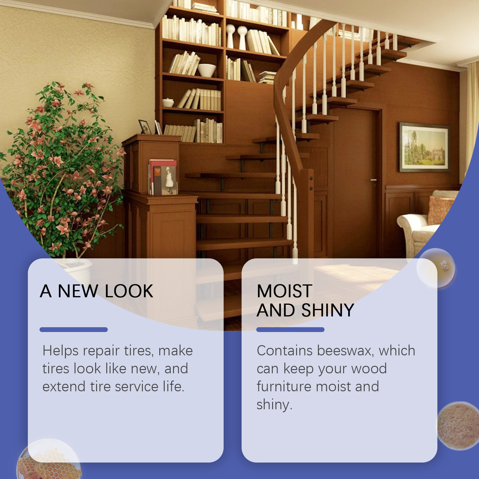 Our beeswax polishes contain orange oil, beeswax and glycerin. It can help repair tires, give them a fresh look and extend their service life. Contains beeswax to keep wooden furniture moist and shiny. Its use is simple: 1. Clean your home and keep it dry; 2. Evenly spray appropriate amount of this product on the furniture, and wipe it back and forth with a sponge or rag until the surface is smooth. 3. Let it dry. It uses mild ingredients that will not damage the surface of the furniture, allowing you to use it with confidence.